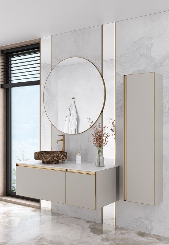 Пенал Armadi Art Quatro 791-CM-MG, 35 см, подвесной, цвет cashmere профиль золото матовое