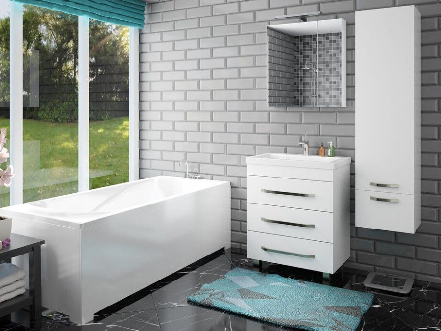 Мебель выполнена из влагостойкого ЛДСП и качественного MDF с использованием эмали RENNER (Италия). Дверца и ящик снабжены системой плавного закрывания. Для мебели используется фурнитура Samet (Турция).