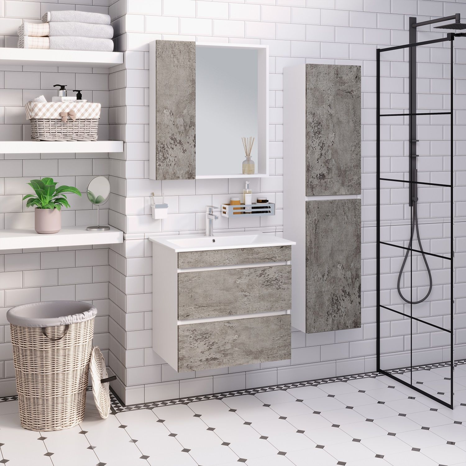 Пенал Runo универсальный серый бетон Манхэттен 35 (00-00001020)
