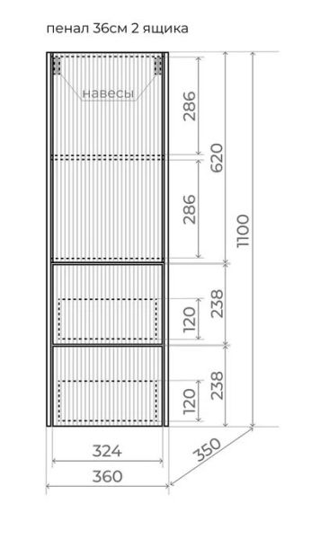 - Шкаф-пенал (ш/г/в): 360x350x1100 мм