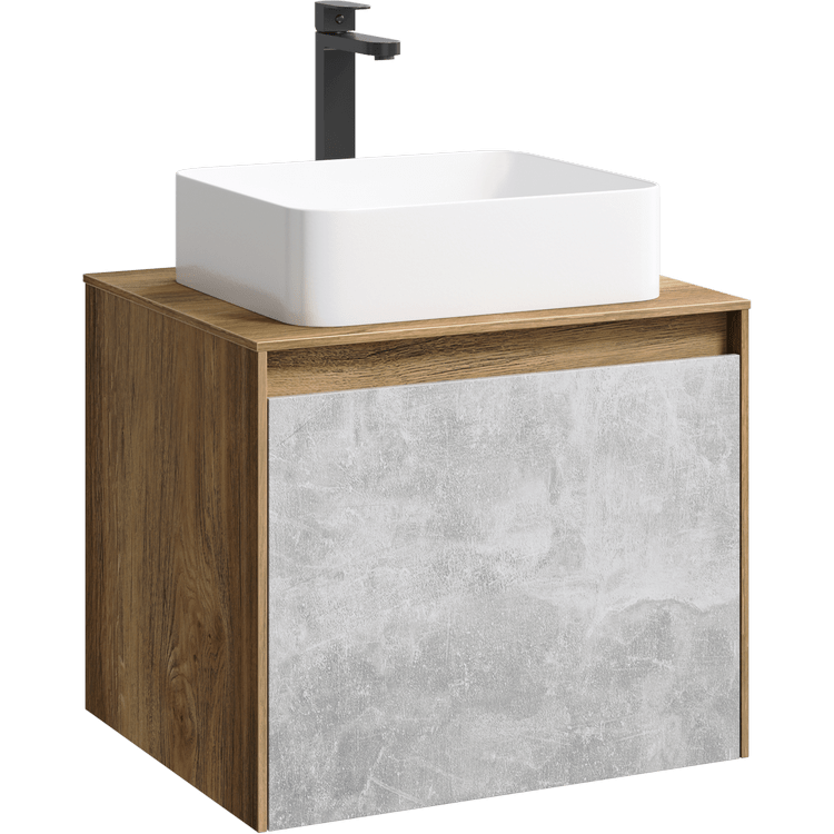 Подвесная тумба под раковину Aqwella Mobi MOB0106DB+MOB0706BS 60 смПодвесная тумба 60 см с двумя ящиками: основной и внутренний, скрытый за фасадом. Цвет дуб балтийский/бетон светлый; с умывальником
