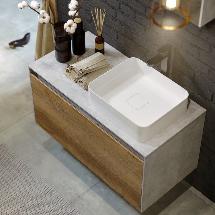 Подвесная тумба под раковину Aqwella Mobi MOB0110BS+MOB0710W 100 смПодвесная тумба 100 см с двумя ящиками: основной и внутренний, скрытый за фасадом. Цвет бетон светлый/белый; с умывальником