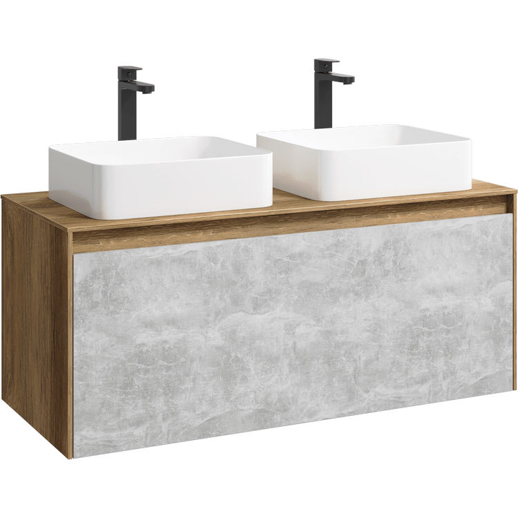 Подвесная тумба под раковину Aqwella Mobi MOB0112DB+MOB0712BS 120 смПодвесная тумба 120 см с двумя ящиками: основной и внутренний, скрытый за фасадом. Цвет дуб балтийский/бетон светлый; с умывальником
