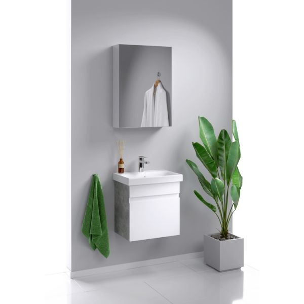 Подвесная тумба под раковину Aqwella Smart SRT0105BS 50 смПодвесная тумба с одним ящиком, цвет бетон светлый с умывальником