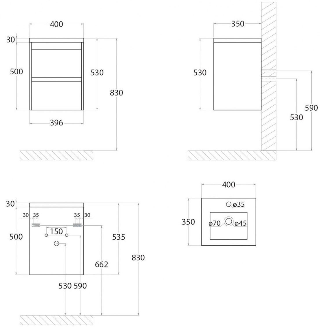 - Рекомендуемая высота от пола: 830 мм