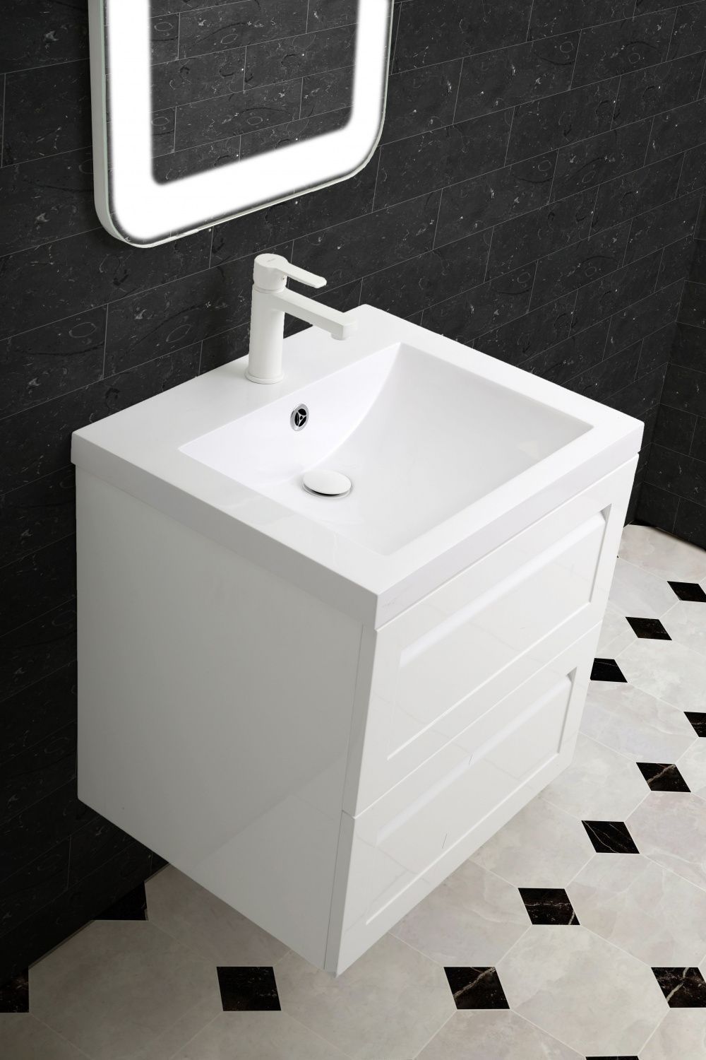 Подвесная тумба под раковину Art&Max Platino 58см белый матовый AM-Platino-580-2C-SO-BM