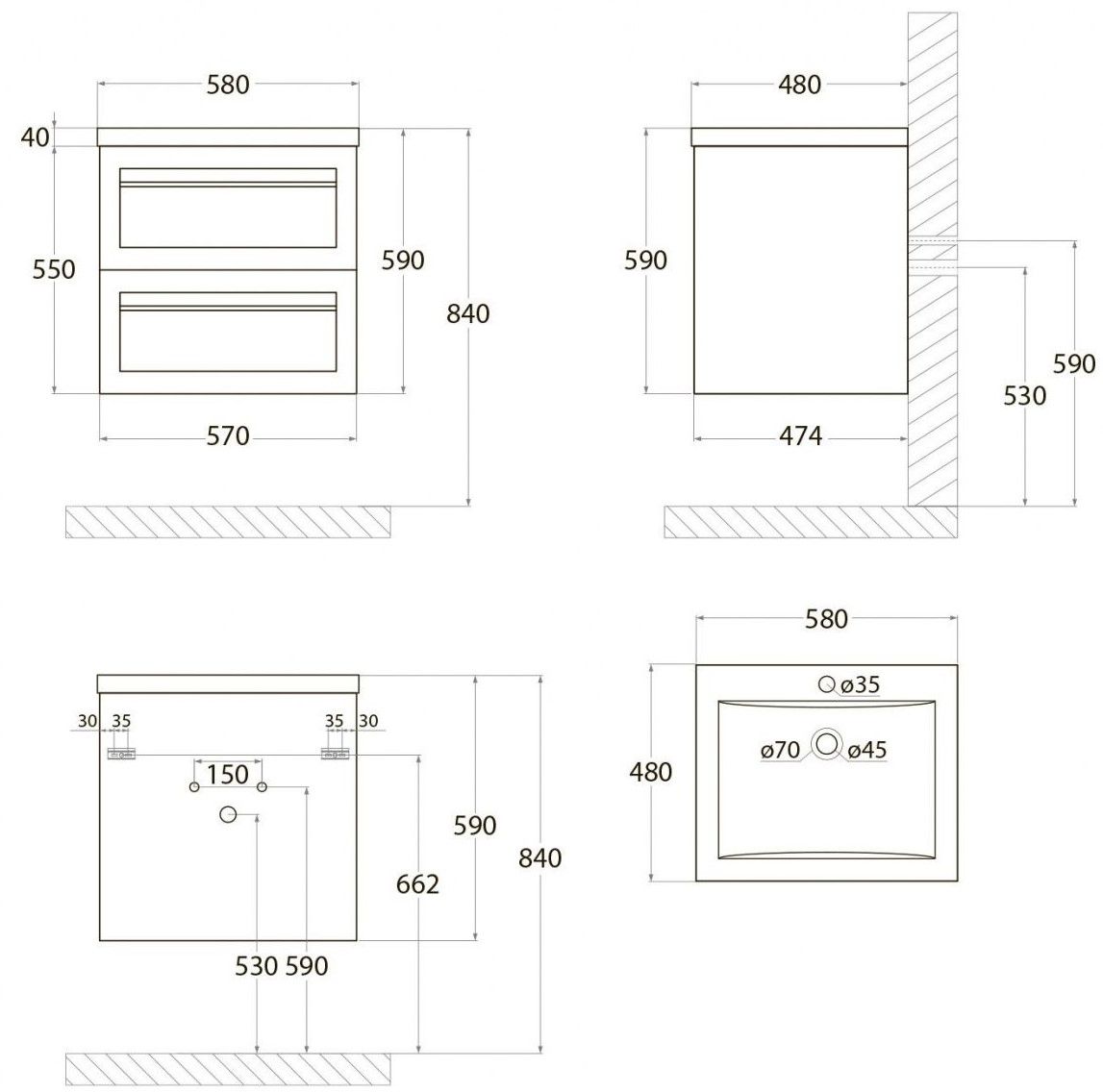 - Рекомендуемая высота от пола: 840 мм