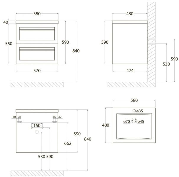Тумба под раковину Art&Max выполнена в современном стиле и прекрасно впишется в интерьер любой ванной комнаты. Благодаря подвесной конструкции изделие не занимает много места, позволяет экономить пространство и облегчает уборку. Модель оснащена двумя выдвижными ящиками с доводчиками. Фасад изделия выполнен из МДФ.Тумба может использоваться вместе с раковиной AM-LAV-580-MR-A.Раковина и смеситель в комплект поставки не входят и приобретаются отдельно.Особенности: