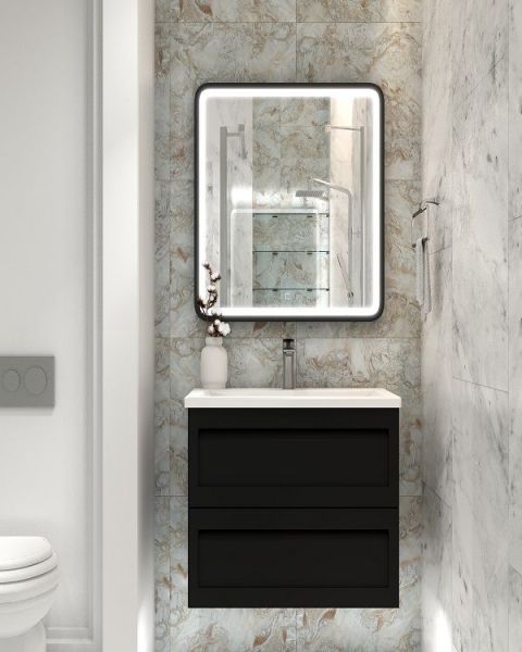 Подвесная тумба под раковину Art&Max Platino 60см чёрный матовый AM-Platino-600-2C-SO-NM-Cer