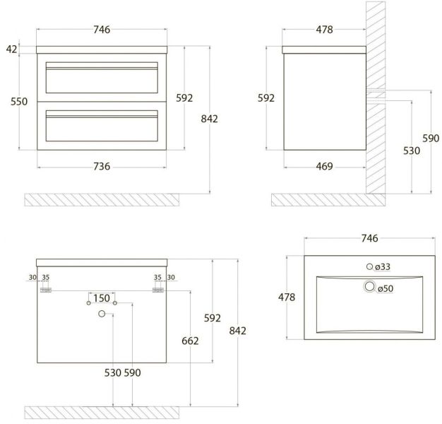 - Рекомендуемая высота от пола: 842 мм