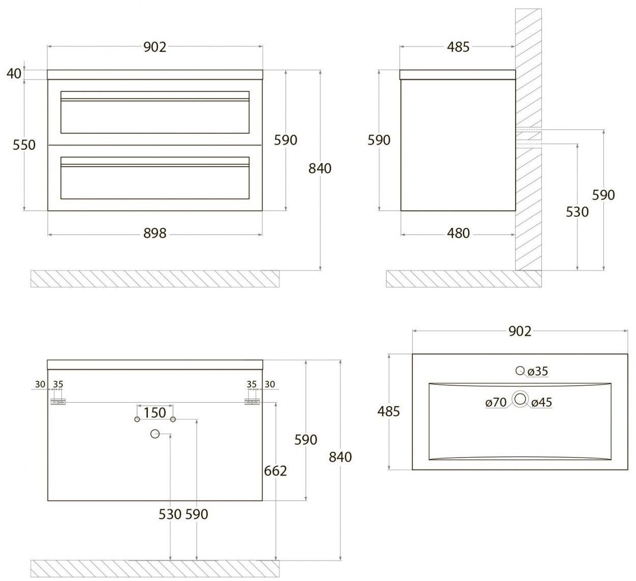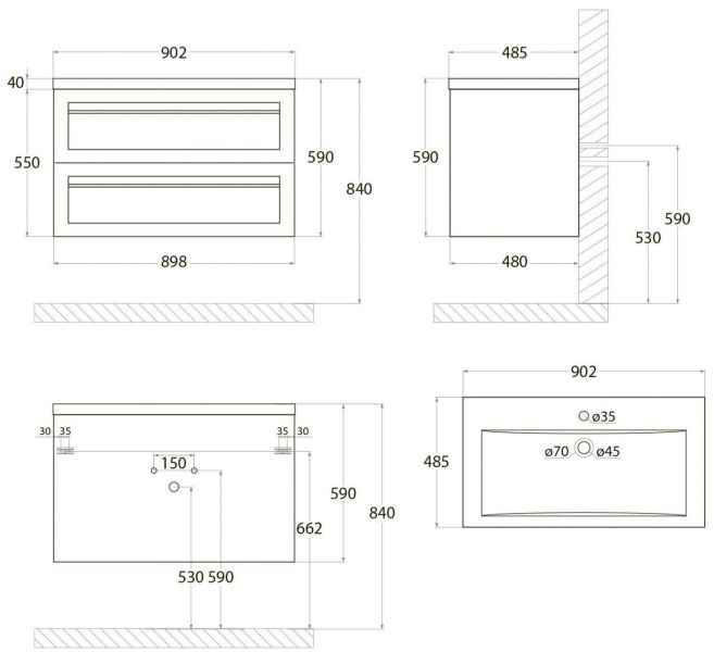 - Рекомендуемая высота от пола: 840 мм