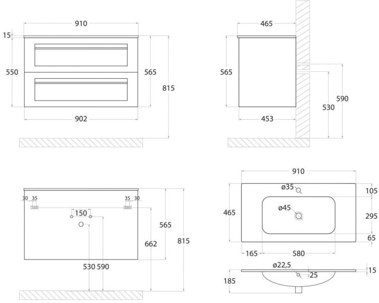 Подвесная тумба под раковину Art&Max Platino 90см белый матовый AM-Platino-900-2C-SO-BM-Cer