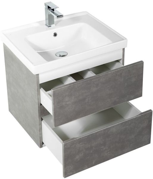 Тумба под раковину Art&Max выполнена в современном стиле и прекрасно впишется в интерьер любой ванной комнаты. Благодаря подвесной конструкции изделие не занимает много места, позволяет экономить пространство и облегчает уборку. Модель оснащена двумя выдвижными ящиками с направляющими скрытого монтажа, не полного выдвижения с доводчиками. Фасад изделия выполнен из МДФ, ящики - из ЛДСП.Используется совместно с раковиной Dreja Grace 60.Смеситель в комплект поставки не входит и приобретается отдельно.Особенности: