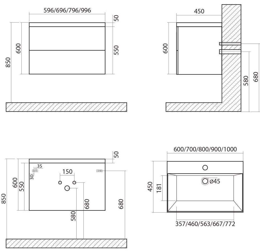 Тумба под раковину Art&Max выполнена в современном стиле и прекрасно впишется в интерьер любой ванной комнаты. Благодаря подвесной конструкции изделие не занимает много места, позволяет экономить пространство и облегчает уборку. Модель оснащена двумя выдвижными ящиками с направляющими скрытого монтажа, не полного выдвижения с доводчиками. Фасад изделия выполнен из МДФ, ящики - из ЛДСП.
