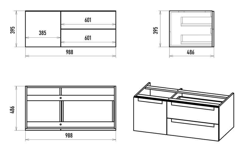 Подвесная тумба под раковину Brevita Cargo CAR-01100-011П2Я 100см белый