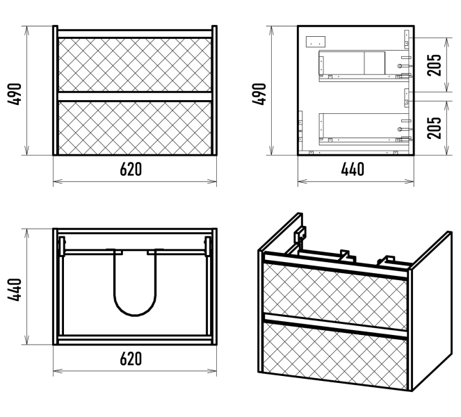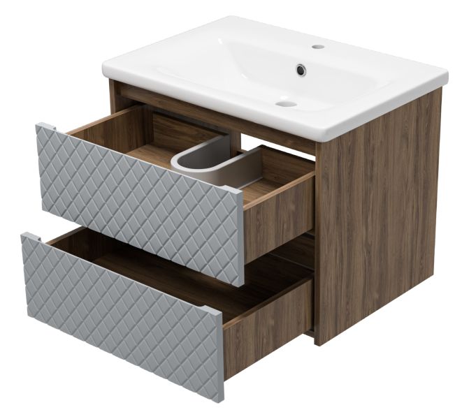Подвесная тумба под раковину Brevita Chester CHE-09065-49502Я 65см серый/дуб Чарльстон темно-коричневый