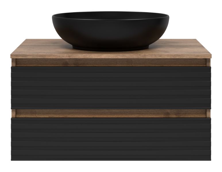Подвесная тумба под раковину Brevita Dakota DAK-09080-19/02-2Я 80см дуб Галифакс олово/чёрный