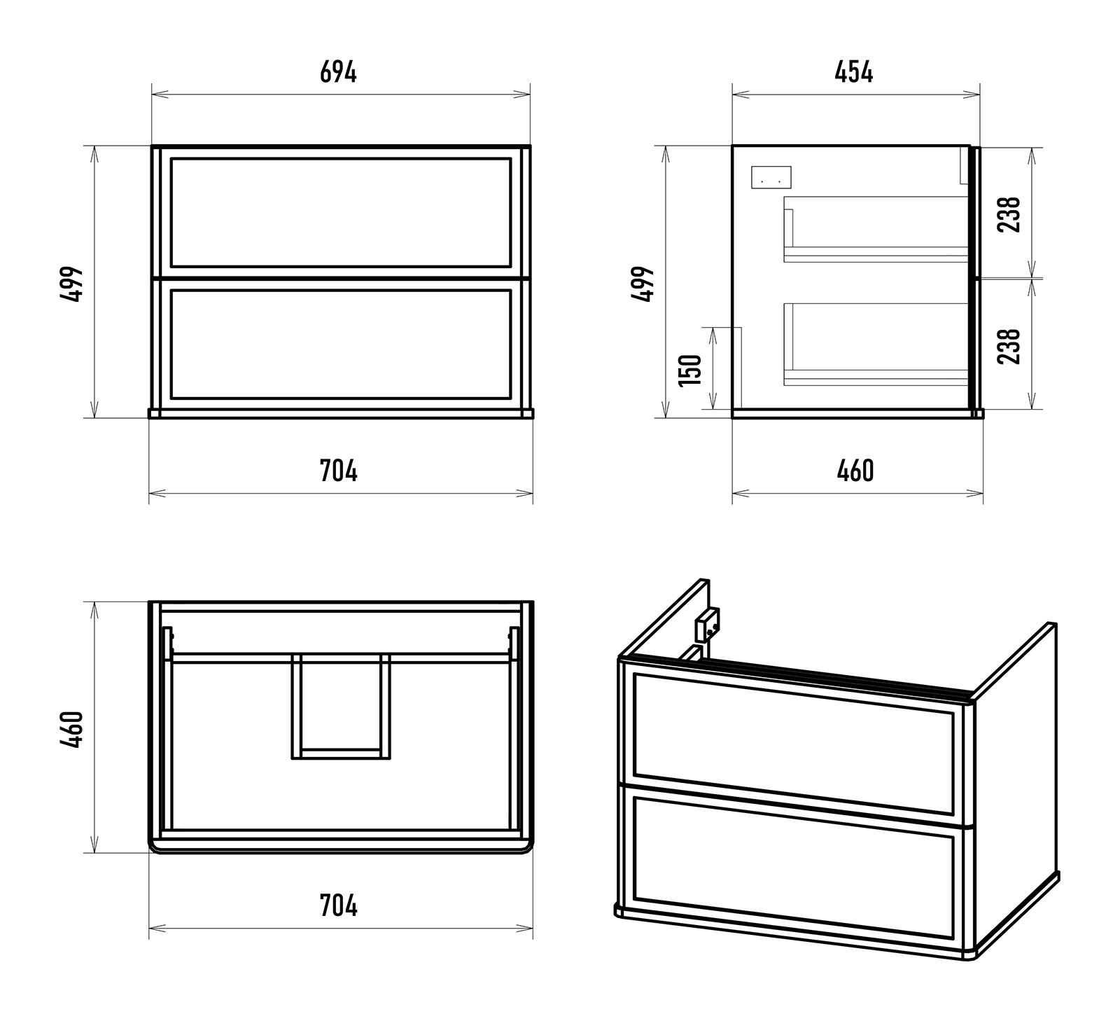 В комплекте с тумбой идёт раковина ONDA 70 см