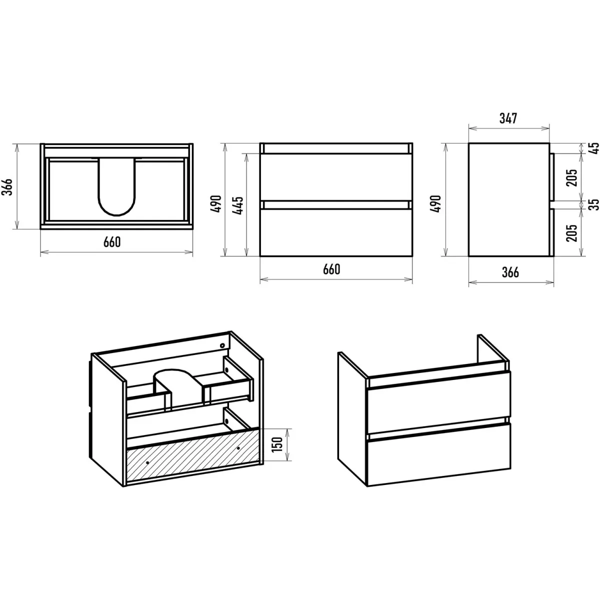 Подвесная тумба под раковину Brevita Victory 66 VIC-07070-0302Я серый