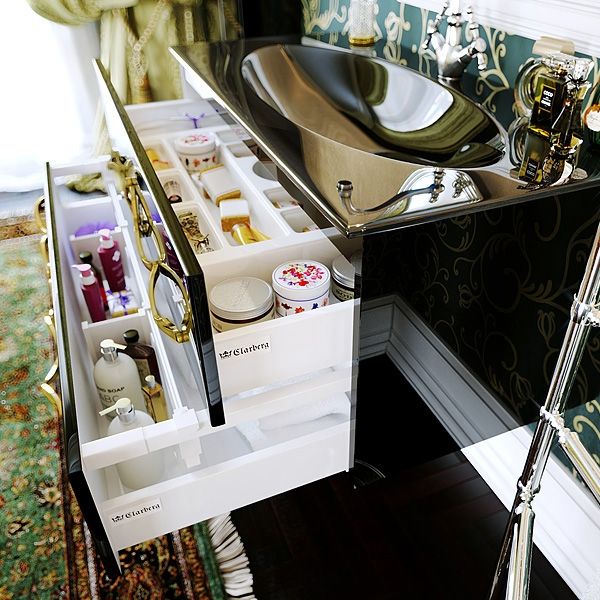 Тумба оснащена механизмами плавного и бесшумного закрытия, направляющими скрытого монтажа.
