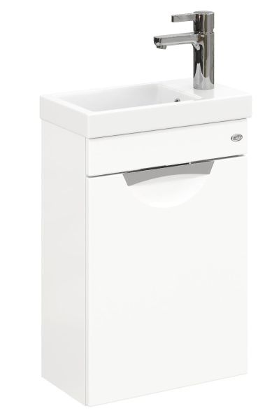 Главные особенности - это белая глянцевая поверхность, миниатюрные габариты, удобная врезная хромированная ручка на дверце с системой плавного закрывания, за которой есть место для размещения необходимых мелочей.