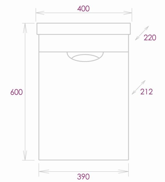 Размеры тумбы без учета раковины: 39х21х55 см.