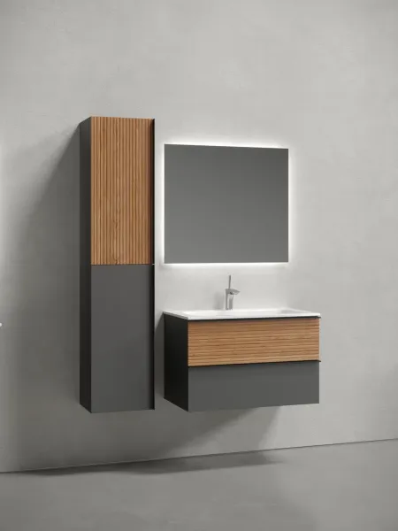 Подвесная тумба под раковину Sancos Delta DL80GR 80см дуб красный/графит купить