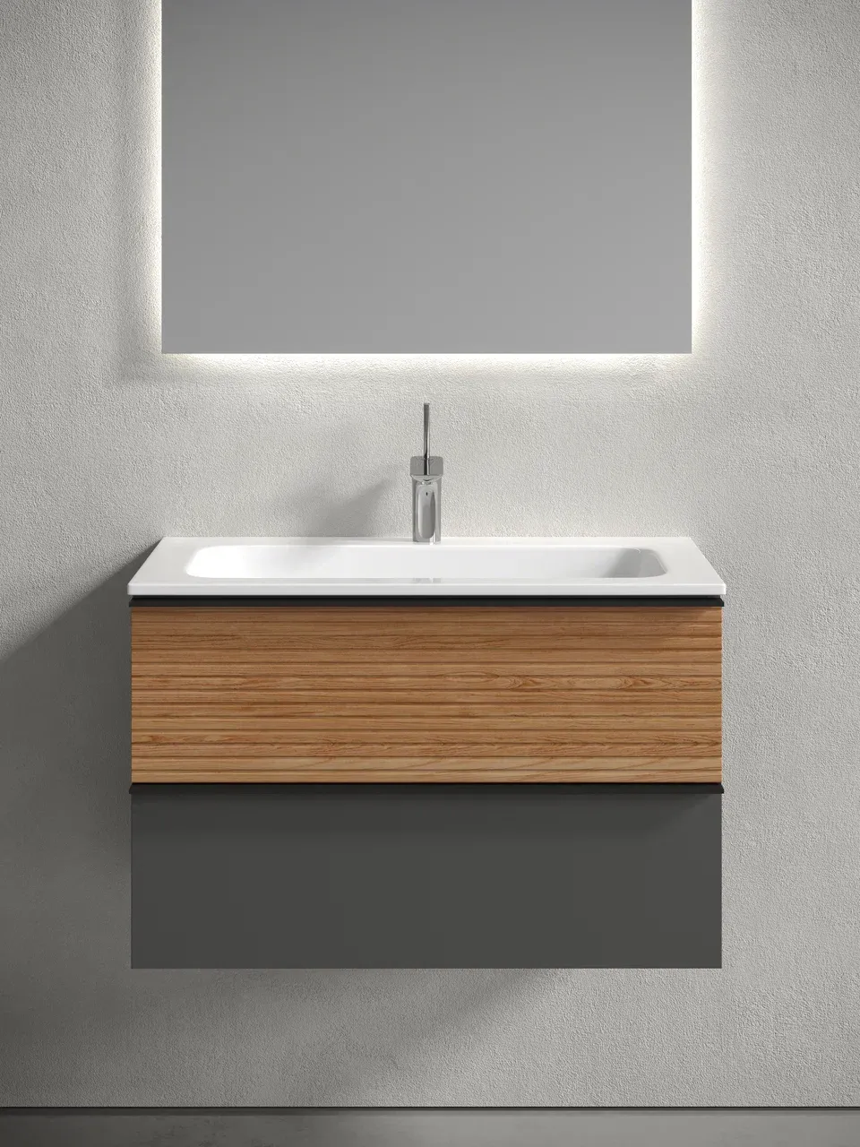 Подвесная тумба под раковину Sancos Delta DL80GR 80см дуб красный/графит