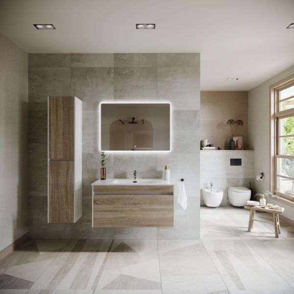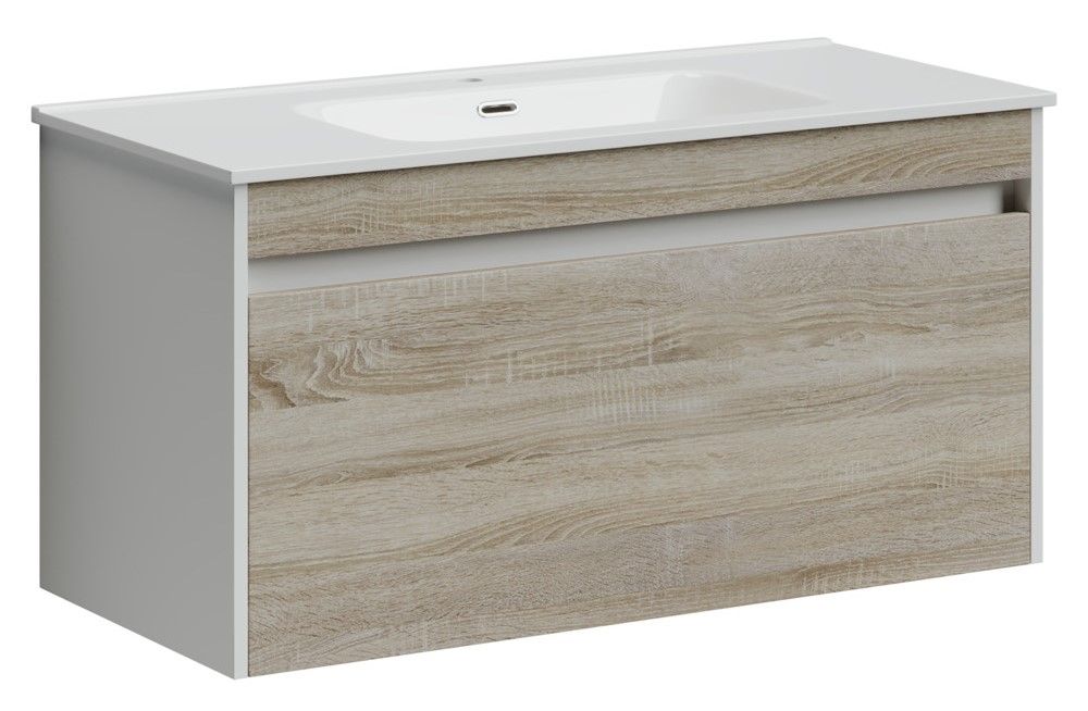 Подвесная тумба под раковину Sancos Smart SM100E 100см дуб бардолино/белый