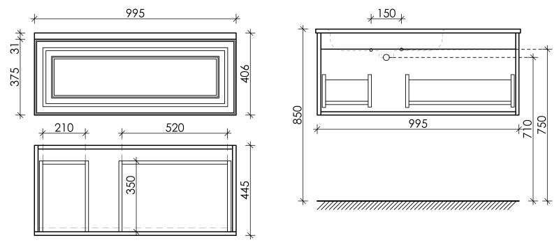Подвесная тумба под раковину Sancos Very VR100LSM левая 100см Doha Soft купить