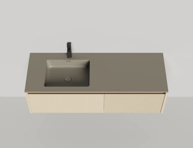 - Тумба и столешница из материала S-Stone в сборе (накладные раковины укомплектованы донным клапаном и поставляются в отдельной коробке)