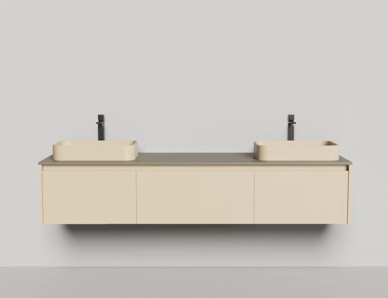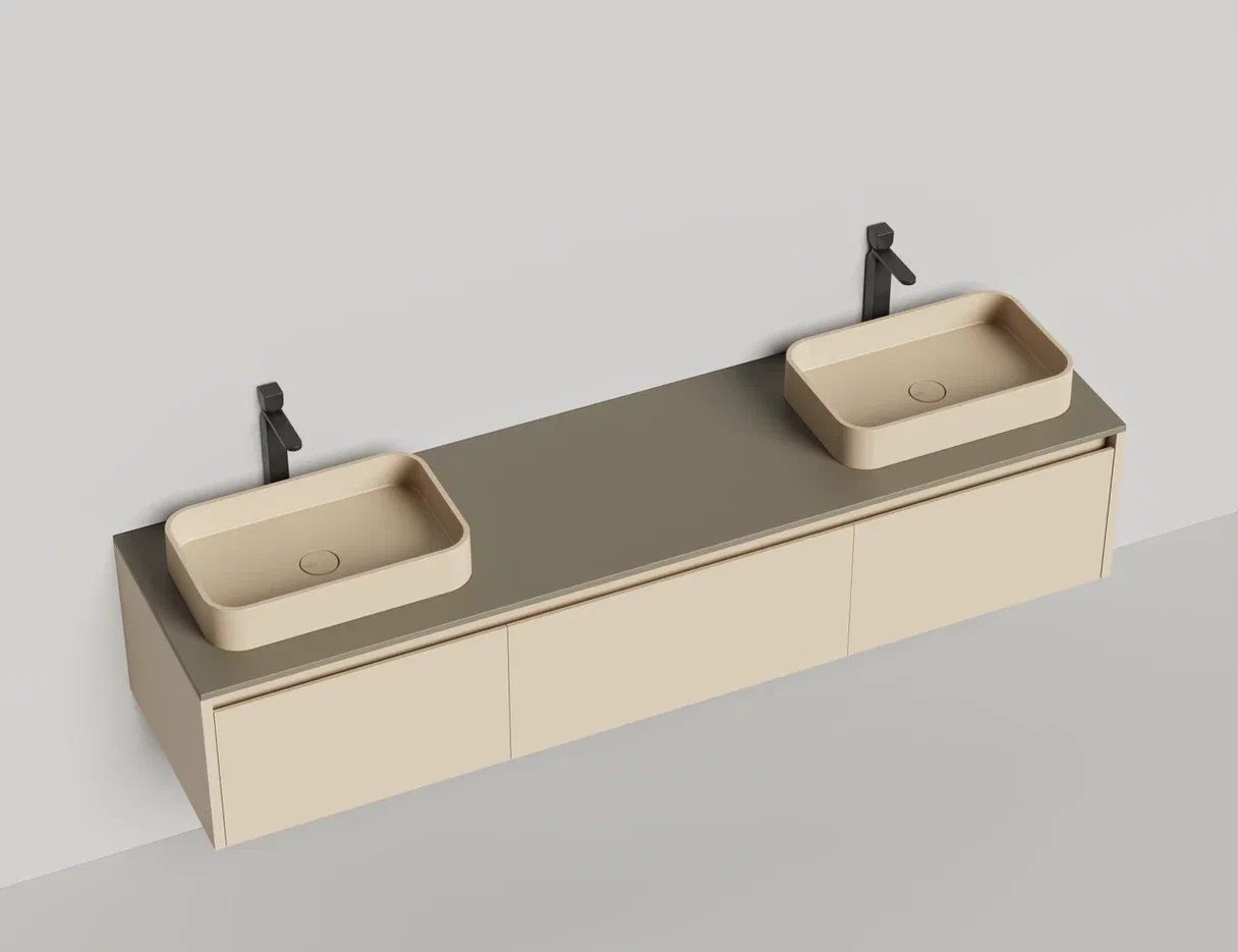 - Тумба и столешница из материала S-Stone в сборе (накладные раковины укомплектованы донным клапаном и поставляются в отдельной коробке)