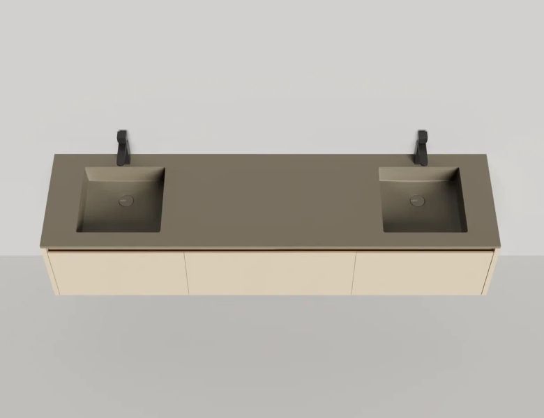 - Тумба и столешница из материала S-Stone в сборе (накладные раковины укомплектованы донным клапаном и поставляются в отдельной коробке)