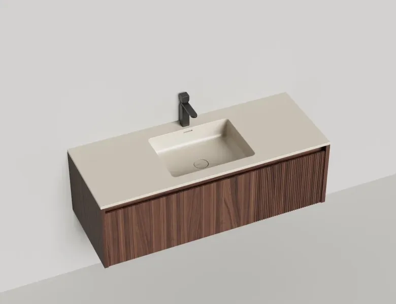 - Тумба и столешница из материала S-Stone в сборе (накладные раковины укомплектованы донным клапаном и поставляются в отдельной коробке)