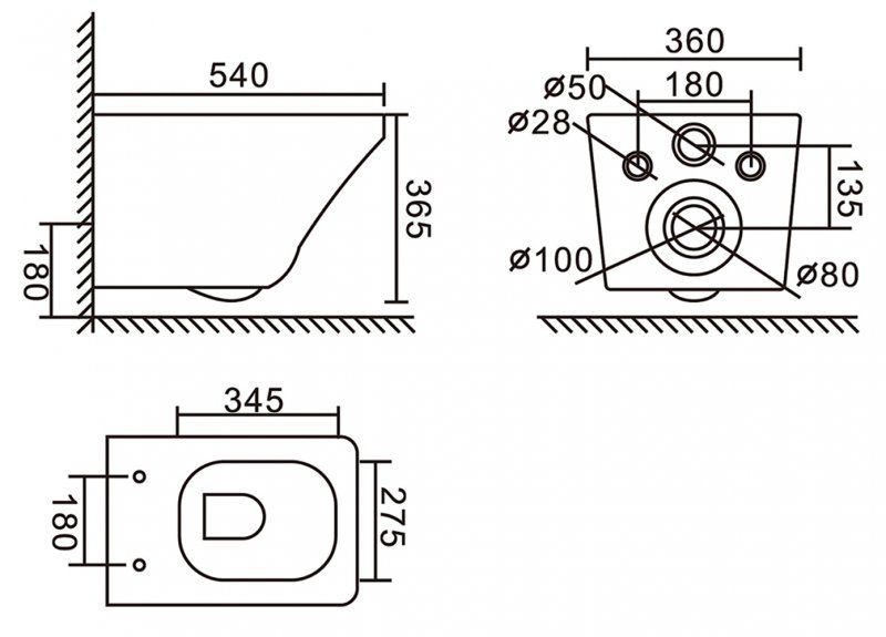 Унитаз подвесной безободковый c сиденьем