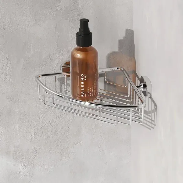 Полка в ванную угловая AM.PM Sense L A7434800 хромБогатство и вариативность коллекции аксессуаров Sense L позволит подобрать все для создания по-настоящему красивой семейной ванной комнаты. В этой коллекции представлены: безопасные поручни для ванны вместительные двойные стаканы функциональная угловая корзина для душа. Коллекция аксессуаров выполнена в скандинавском стиле для которого характерны простые и симметричные формы невероятная эргономичность и проработанные до мелочей детали. Все продукты коллекции произведены из сплава металлов высочайшего качества с многослойным стойким к истиранию хромовым покрытием. В аксессуарах используется закаленное матовое стекло которое абсолютно безопасно: даже разбиваясь оно не оставляет острых осколков.