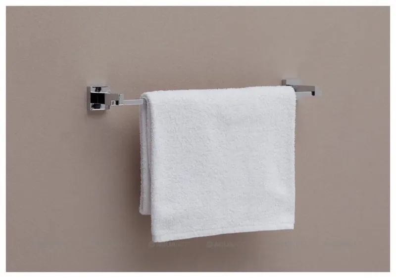 Держатель для полотенец Aquanet 4718 (45 см) отличается необычайной рельефностью образа, которому придает еще большую выразительность блеск хромированных поверхностей. Для монтажа держателя предусмотрен настенный крепеж, скрытый за двумя декоративными деталями квадратной формы с закругленными углами. Изделие рассчитано на размещение одного полотенца, для чего между держателями закреплен металлический стержень длиной 45 см, квадратный на срезе. Все детали изделия стилистически перекликаются между собой. Держатель изготовлен из высококачественной латуни.