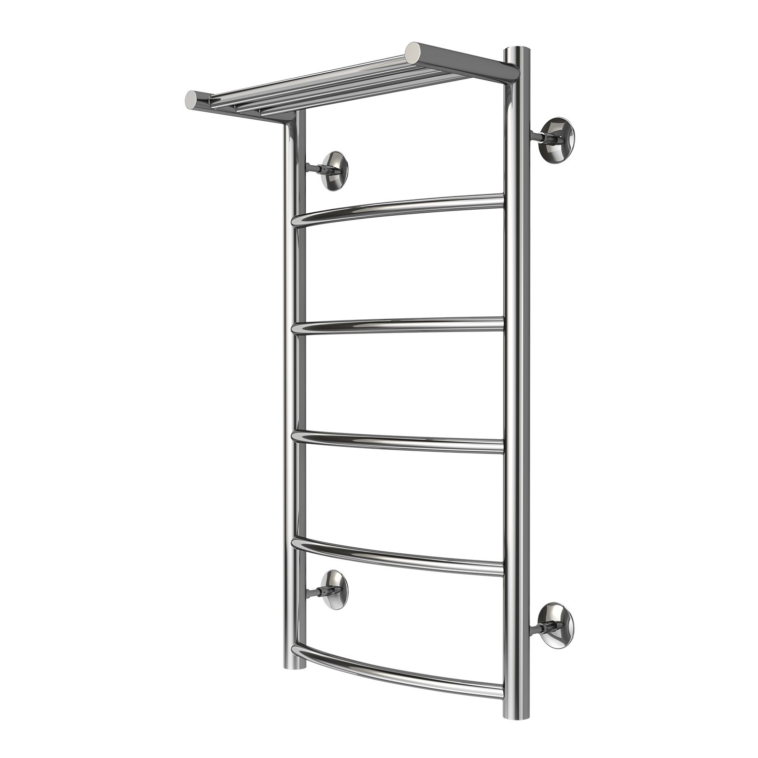 Полотенцесушитель водяной AZARIO VERONA AZ04148P 400/800 с полкой, 5 секций, нижнее/диагональное подключение, 1/2, хром