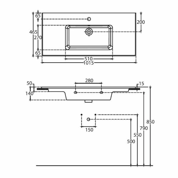 Отверстия под смеситель: 1.