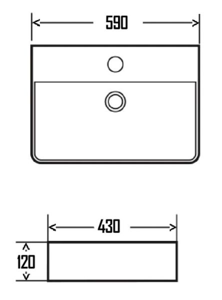 AQM5004 Раковина настольная с отверстием под смеситель. 590х430х120антигрязевое покрытие, антибактериальное покрытие, водоотталкивающее покрытиебез крепежного набора