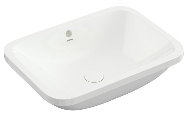Встраиваемая снизу раковина из санфарфора Berges Ego размером 55х41 см.Прямоугольной формы, без отверстия под смеситель, глянцевая белая.Встроенный слив-перелив оформлен декоративной накладкой в цвете хром.Крепеж в комплекте.Гарантия 10лет*Донный клапан необходимо приобрести отдельно