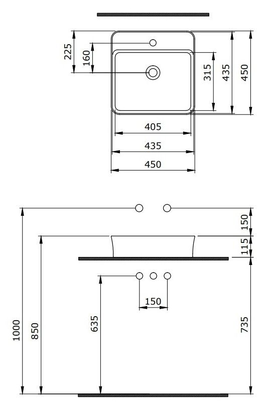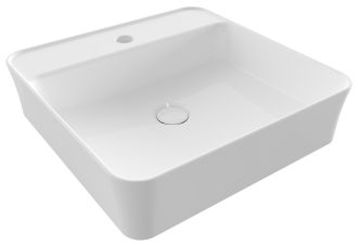 Накладная раковина из санфарфора Berges Ego размером 45х45х11,5 см.Квадратной формы, с отверстием под смеситель, глянцевая белая.