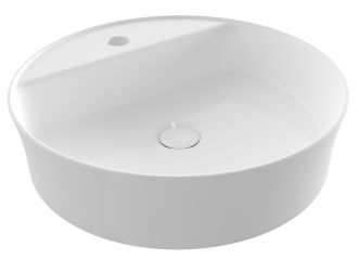 Накладная раковина из санфарфора Berges Ego размером Ø45 см.Круглой формы, с отверстием под смеситель, глянцевая белая.