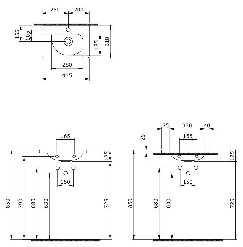 Отверстия под смеситель:1