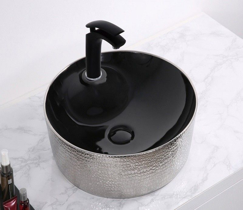 Раковина CeramaLux D1306H020 черно-серая 43 смПодходит для ванных комнат различной планировки в современном стиле и отличается стильной и изящной формой.Материал: санфаянс.В комплекте поставки: раковина.