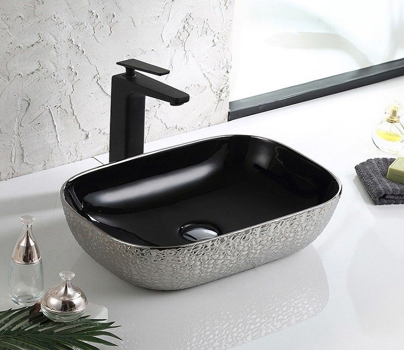 Раковина CeramaLux D1333H022 черно-серая 46 смПодходит для ванных комнат различной планировки в современном стиле и отличается стильной и изящной формой.Материал: санфаянс.В комплекте поставки: раковина.