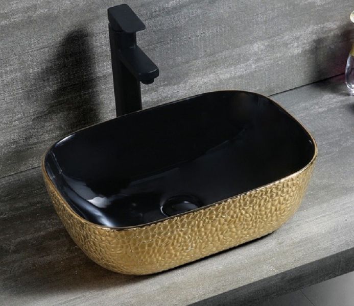 Раковина CeramaLux D1333H022 черно-золотая 46 смПодходит для ванных комнат различной планировки в современном стиле и отличается стильной и изящной формой.Материал: санфаянс.В комплекте поставки: раковина.