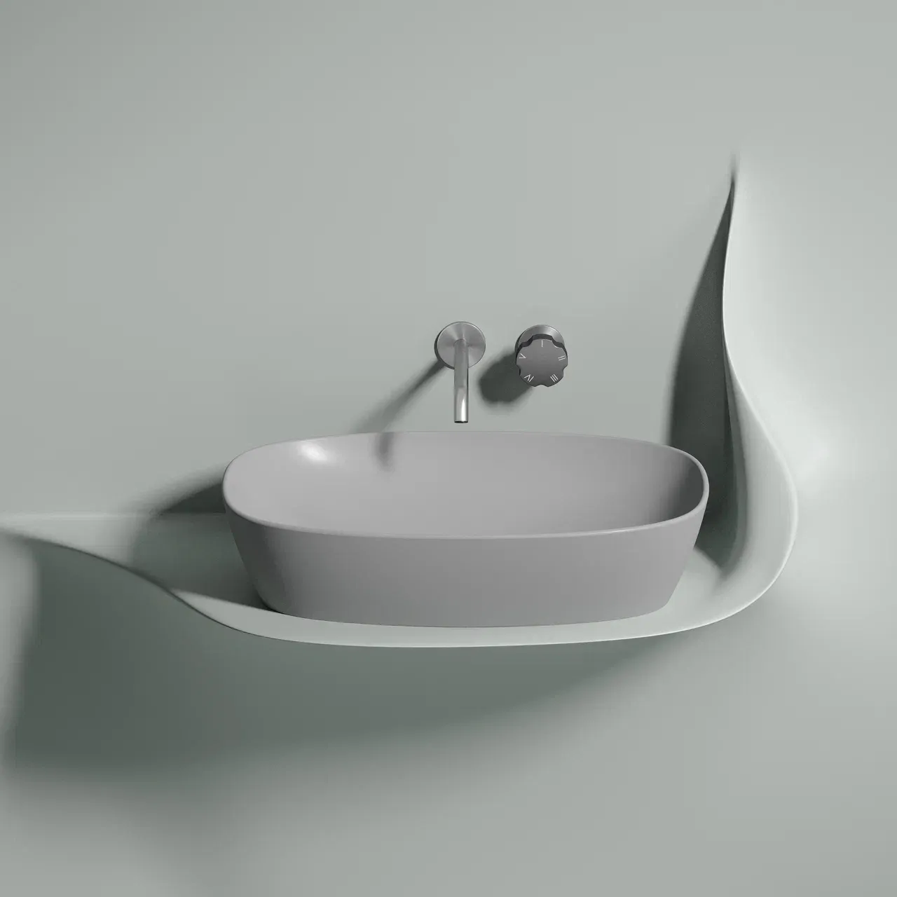 Умывальник чаша накладная овальная (цвет Серый Матовый) Element 600*380*138мм