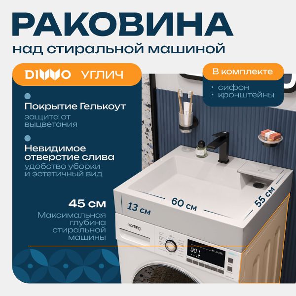 Раковина DIWO Углич RnDUE-60 60 на стиральную машину