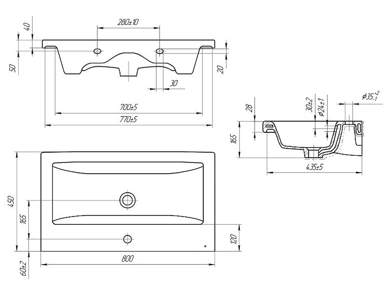 Размер (ШхВхГ): 800х165х450 мм.